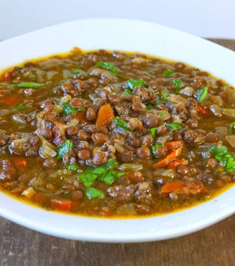 Lentils are a staple in Middle Eastern and Indian cooking and make a thick, rich and delicious soup. They're also a good source of fiber and magnesium and the quickest legume to cook. With bread and a salad, this soup makes a whole meal. On a cold night, a filling soup like this is perfect nourishment for warming body and soulSoluble fiber, found in such high quantities in lentils, forms a gel in the digestive tract that traps cholesterol-containing bile and escorts it out of the body; while insoluble fiber, also plentiful in lentils, provides stool bulk and helps prevent constipation. Just one cup of cooked lentils - less than the amount found in one serving of this soup - contains over 15 grams of dietary fiber, all for only 230 calorie.